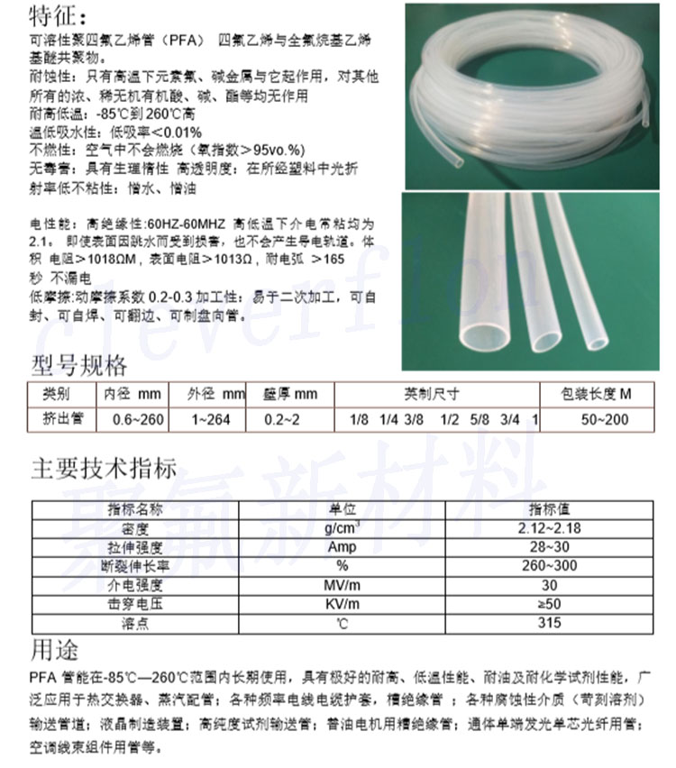 耐腐蚀耐高温260度PFA绝缘管 塑料套管 耐酸碱FEP/F46铁氟龙软管