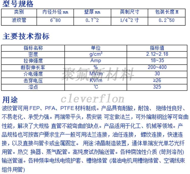 高性能透明PTFE F4 PFA FEP特氟龙波纹管