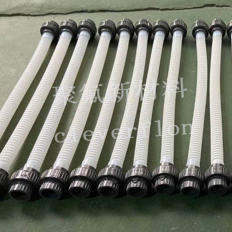 PTFE corrugated tubing is made from PTFE resin and is corrugated by a special tool. It has the properties of