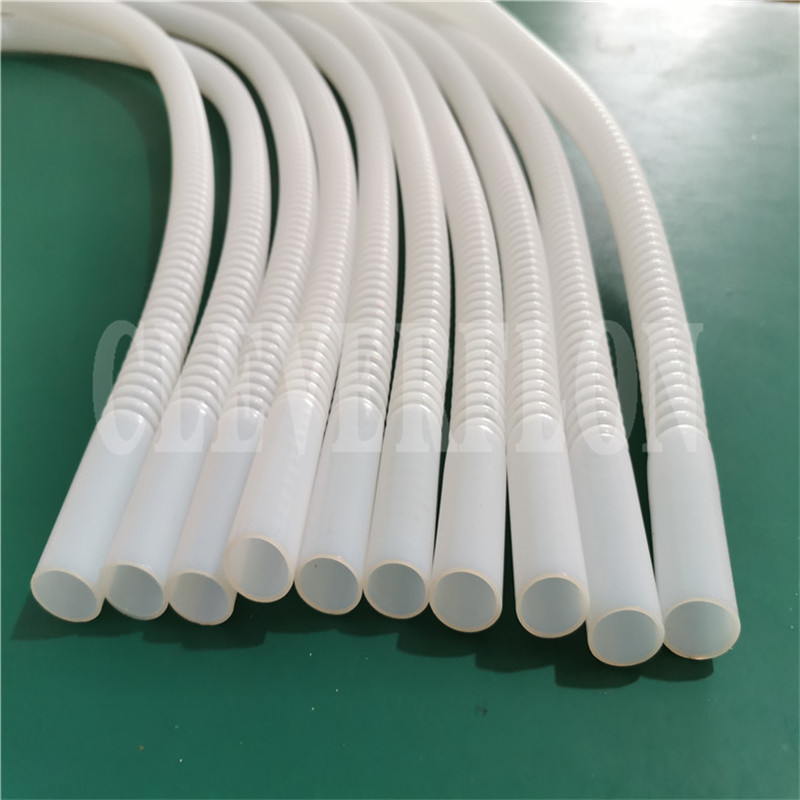 PTFE corrugated tubing is made from PTFE resin and is corrugated by a special tool. It has the properties of